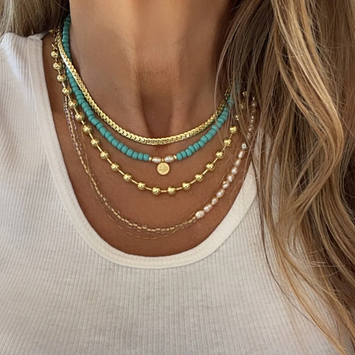 The silver necklace is strung on a satin silver wire with sterling silver clasps. The gold necklace is strung on a satin gold wire with gold filled clasps.